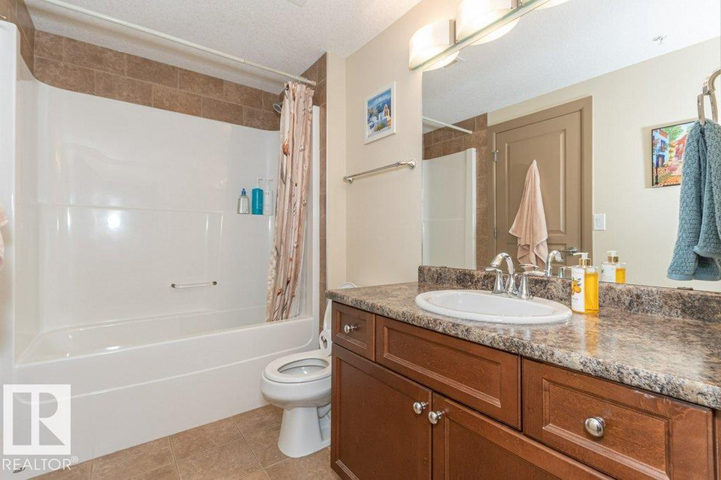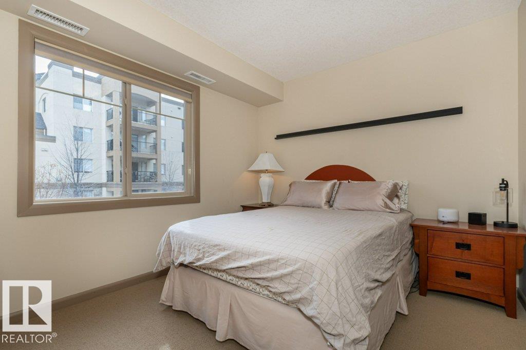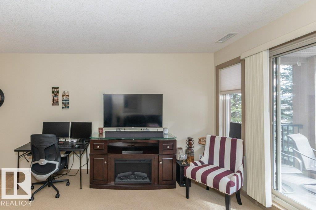 Welcome to this Immaculate, well maintained bright south facing unit. Located in a concrete and steel building, this ONE BEDROOM and DEN has everything going for it and is move in ready. It features NEW Samsung Kitchen appliances and NEW furnace. This OPEN concept has a nice kitchen with lots of counter and cupboard space. Sit up at the kitchen bar or at your dining room table and gaze out through your south facing patio doors.-Or better yet, have a coffee on your deck and listen to the birds rustle in the trees. There is a SPACIOUS BEDROOM and a walk through closet to a 4 piece bath. Set up your office in a nice size DEN or put in another bed for company. Furniture is also negotiable. This could be your perfect property! MLS®: E4478779 - Centennial Village Single Level Apartment $229,000
